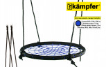 Качели-гнездо Kampfer выполнены из металлической рамы диаметром 100 сантиметров, с дополнительной защитной оплеткой ее бортиков, обтянутых прочным синтетическим канатом выдерживающим нагрузку 100 кг. Плетеное синтетическое сидение качелей удобное и практичное, не собирает грязь и воду, при сильных загрязнениях его можно протереть.